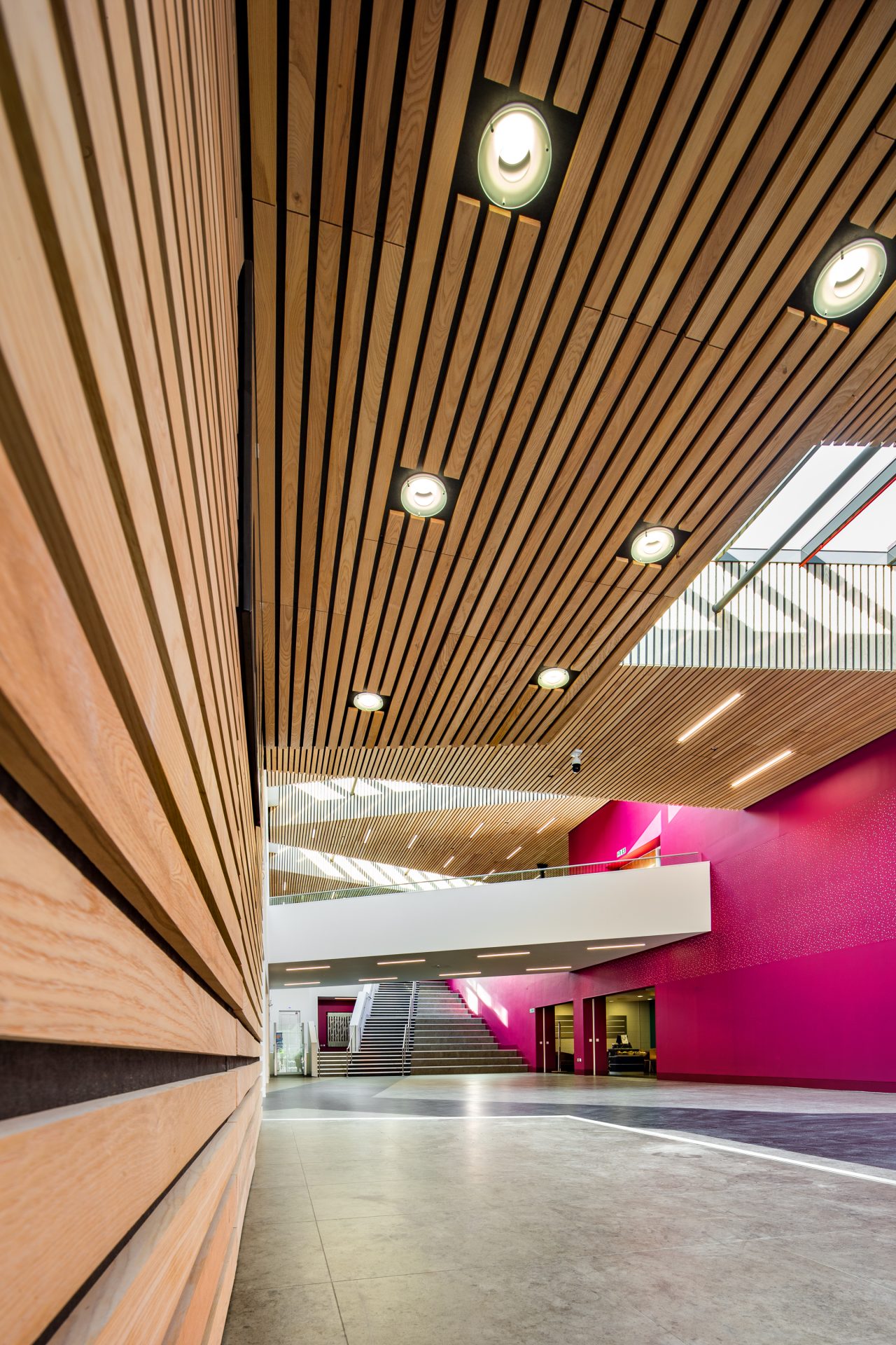 As the walls are all non-load bearing, the refurbishment element of the buildings was largely aesthetic and contained very few structural works . However the concrete framed building contained the challenge of removing the concrete shear walls and stairs on the third floor to open out the space for teaching.